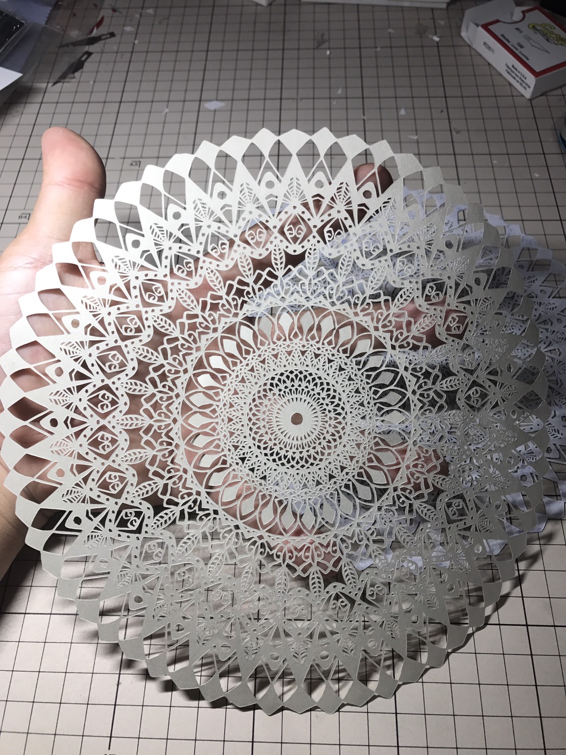 新作が出来ました🎶 何だか水の結晶のようです✨ 縁を切ると又違った感じ😊 影も幻想的♡ 水の結晶写真を撮られた岡本さんが 『水の結晶みたいに綺麗ですね!』 と言う事で写真をとりました✨ 新作完成しました! よかったらシェアしてね! URLをコピーしました! オールフリーハンド 魔法の手⁉︎ 関連記事 【2025年もよろしくお願い致します】 2025年1月10日 【新しく完成した作品は⁉️】 2023年8月22日 【新作完成】 2023年8月11日 【新作完成しました】 2023年4月10日 【新作完成】 2023年4月4日 【完成】 2023年3月21日 【文字の切り絵 新作完成❗️】 2022年12月2日 新作完成 2022年11月20日