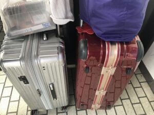 後ろにいる女性の荷物をみながら