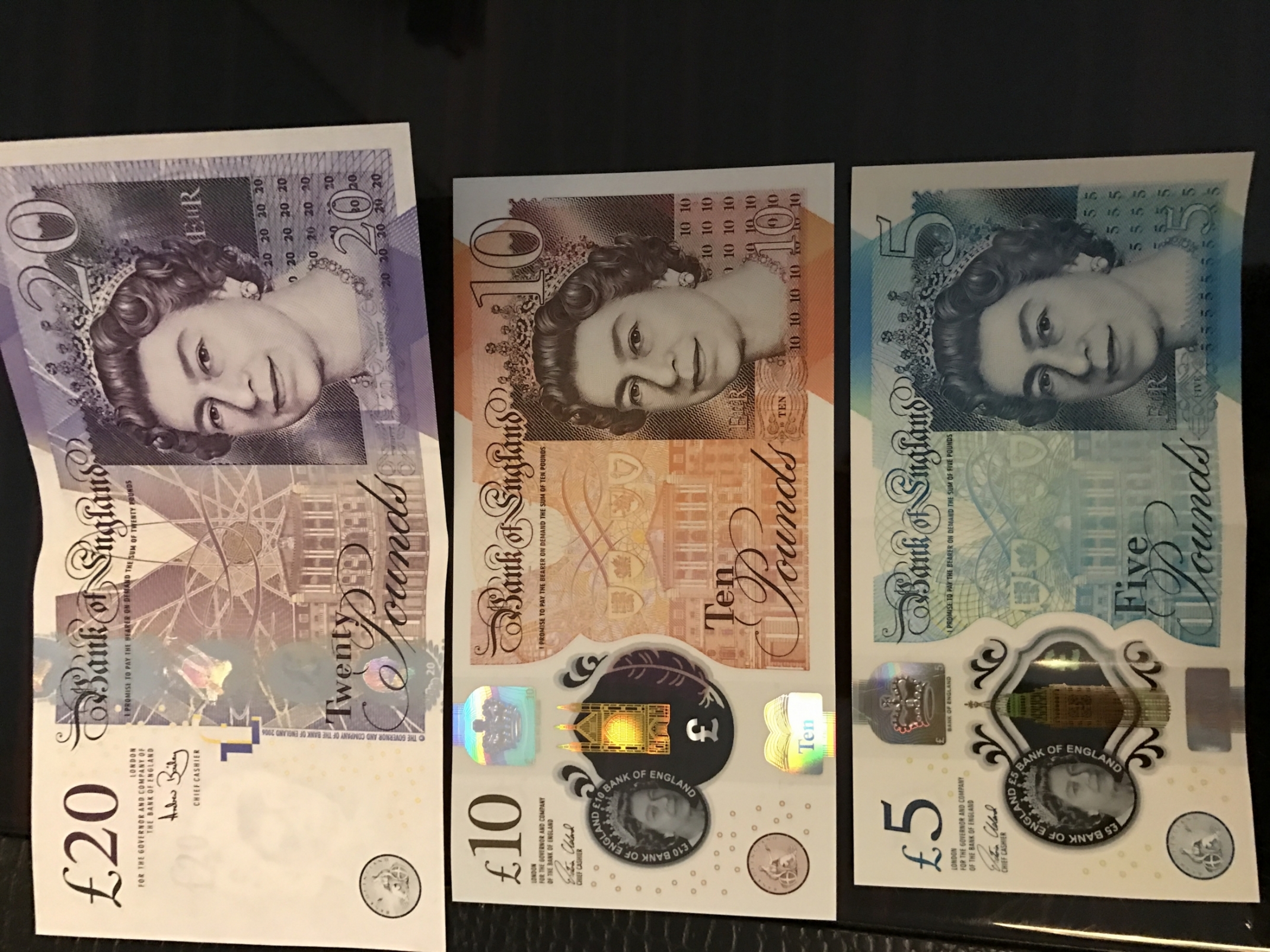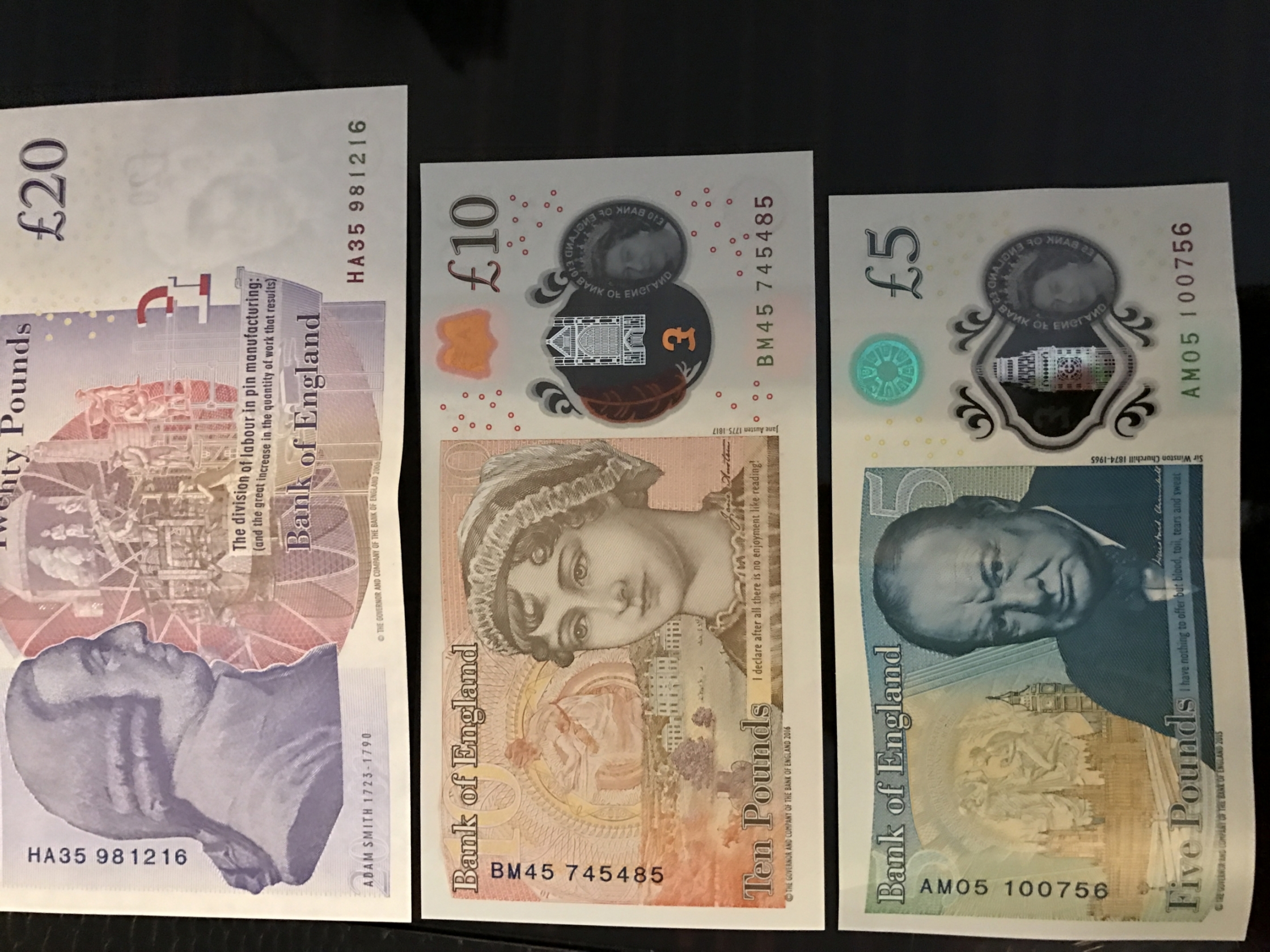 紙幣は£5〜