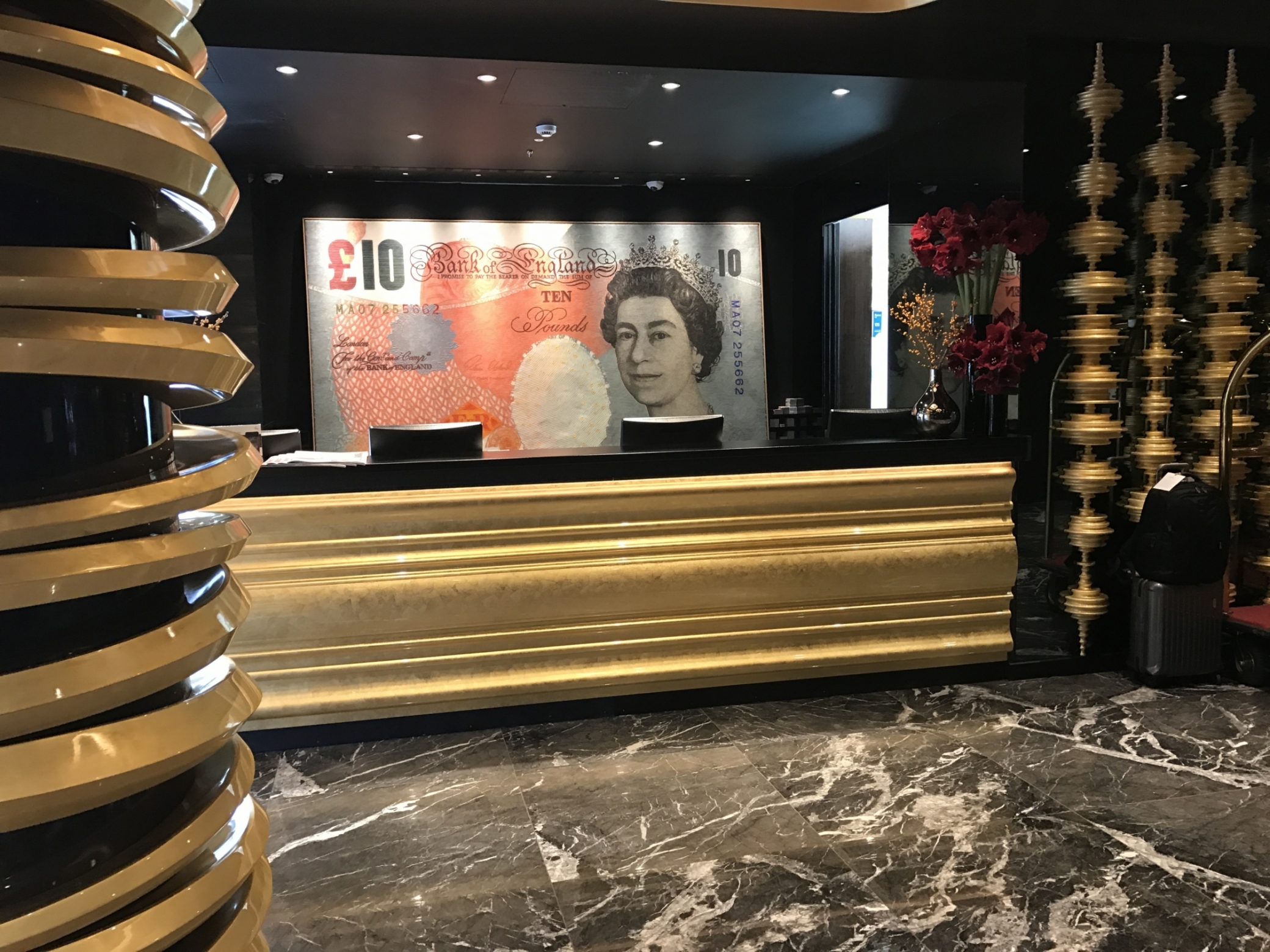 ロビーのフロントにはイギリスの紙幣🇬🇧