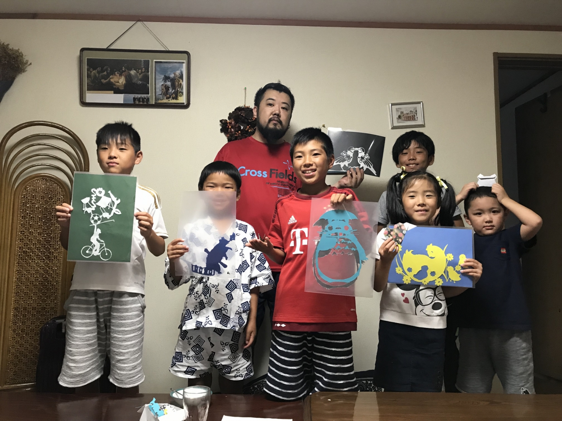 学校に行ってない自称幼稚園卒の九が先生になって切り絵を教えています![]()