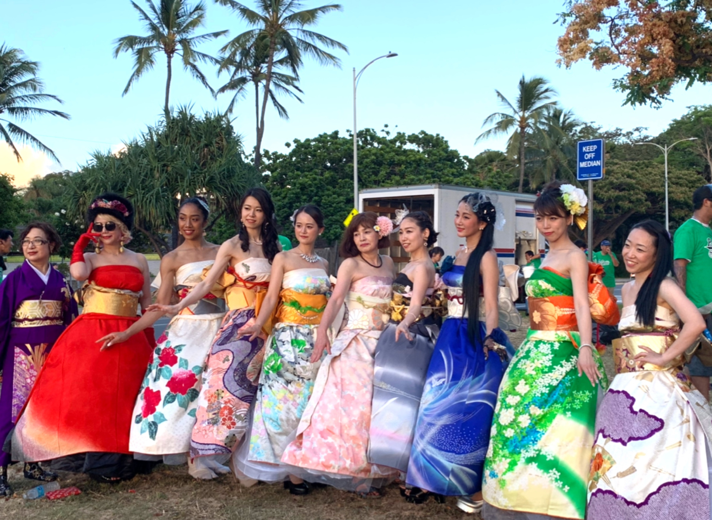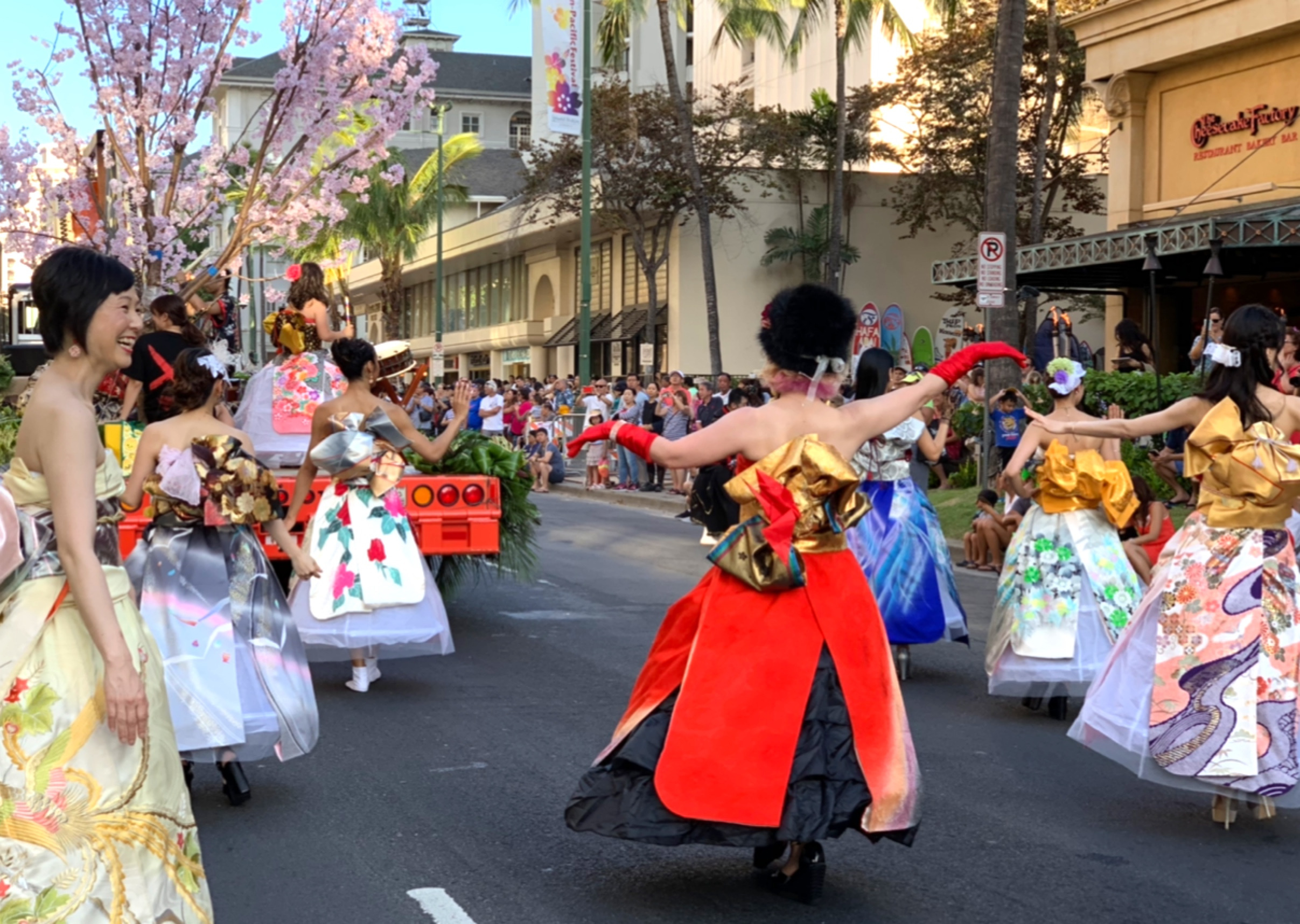 今日はカラカウワ通りを1.7キロパレードしました。