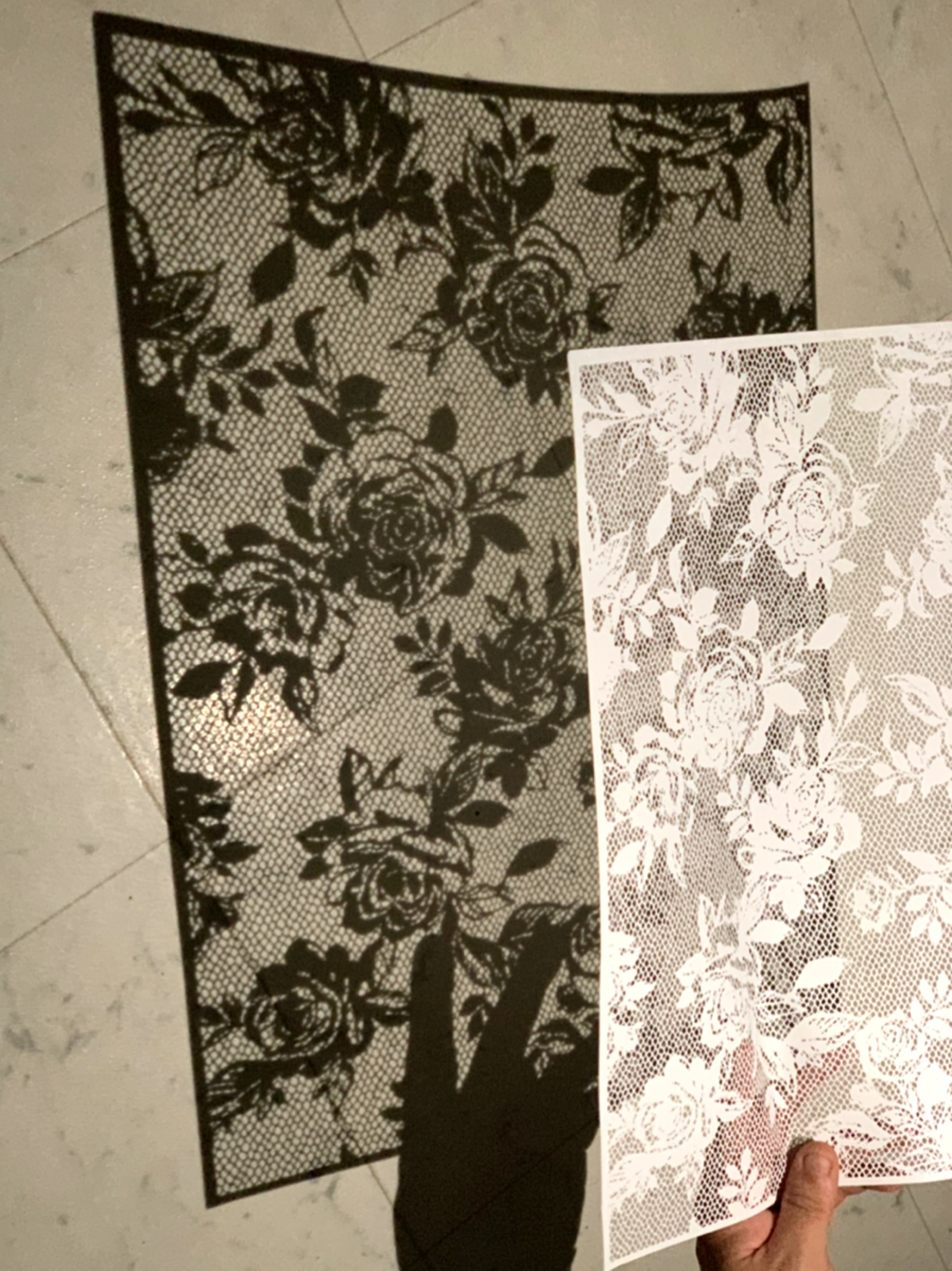 先日まで切っていた薔薇の切り絵がハサミ✂️で切られて…