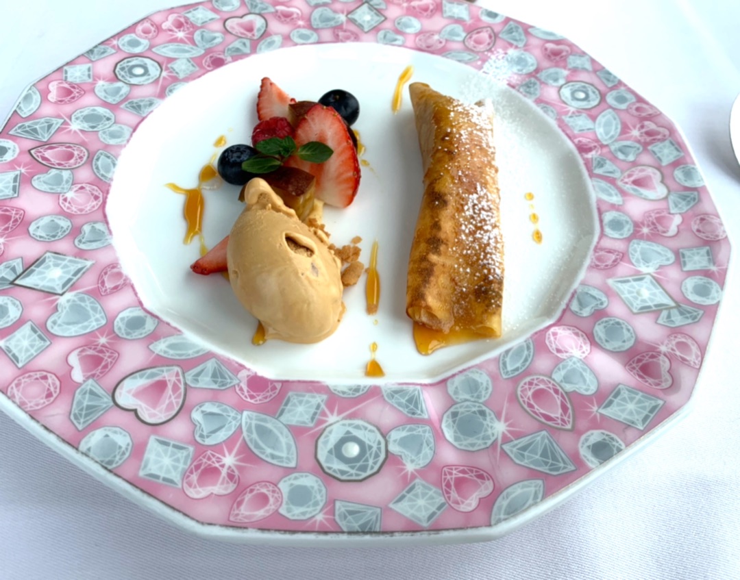 お皿2枚重ねで真ん中に生の花びらでデコレーション✨