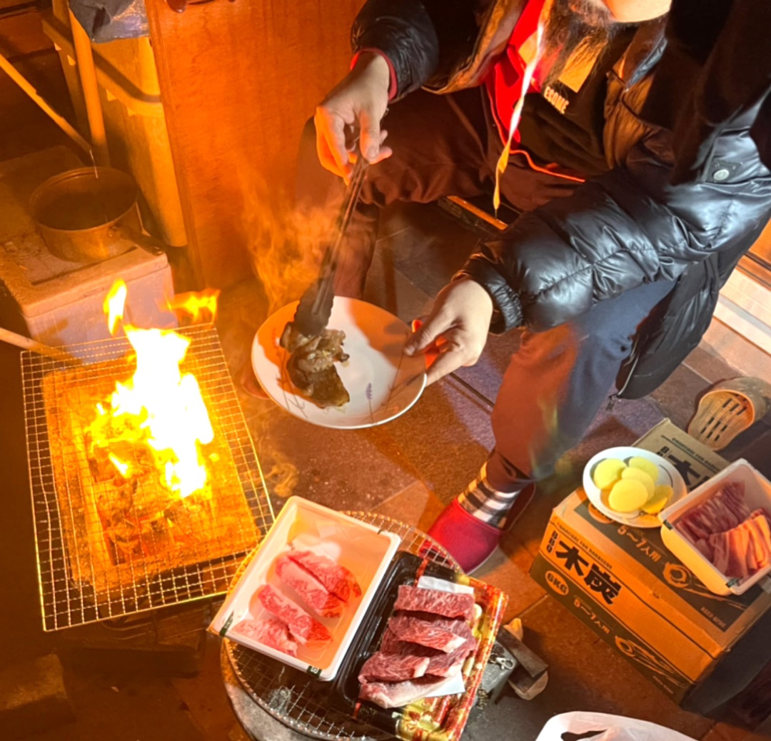 七輪で九🧔に焼いてもらって