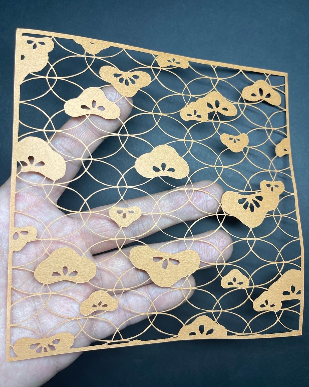 光を当てるとゴールドになる葉っぱ🌿の切り絵を