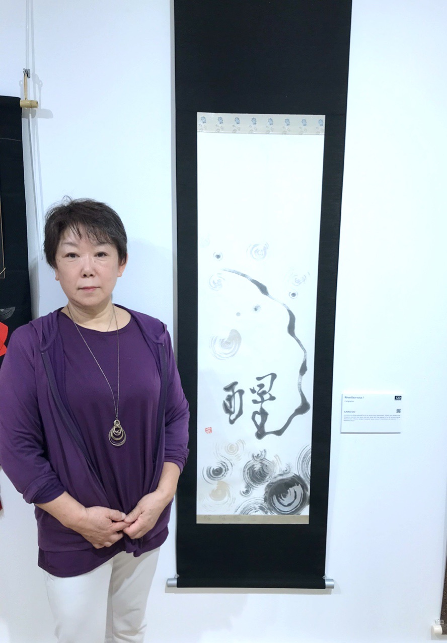 純子堂さんの作品の前でお写真撮って送らせて頂きました