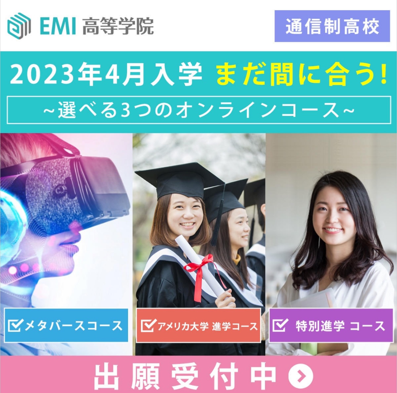 コースも選べますし、海外留学や、これからの時代にマッチしたメタバースの世界をいち早く形にされた『EMI高等学院』の募集が始まっています‼️