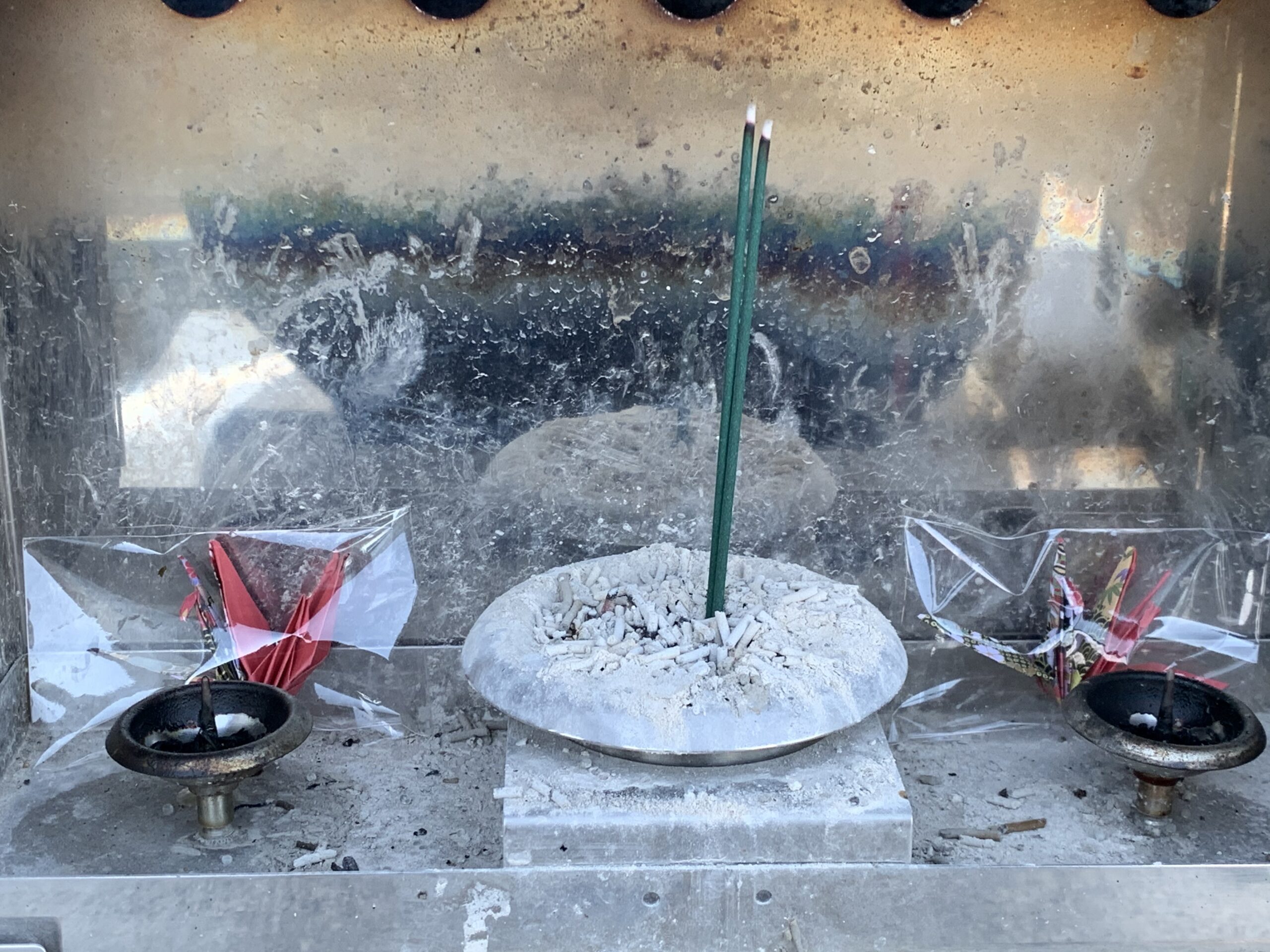 こんなところに置くのも😅ですが、他にないので置いて来たのが昨年の命日。前の年の鶴が無くなっていたので諦めていましたが…残っていました❗️