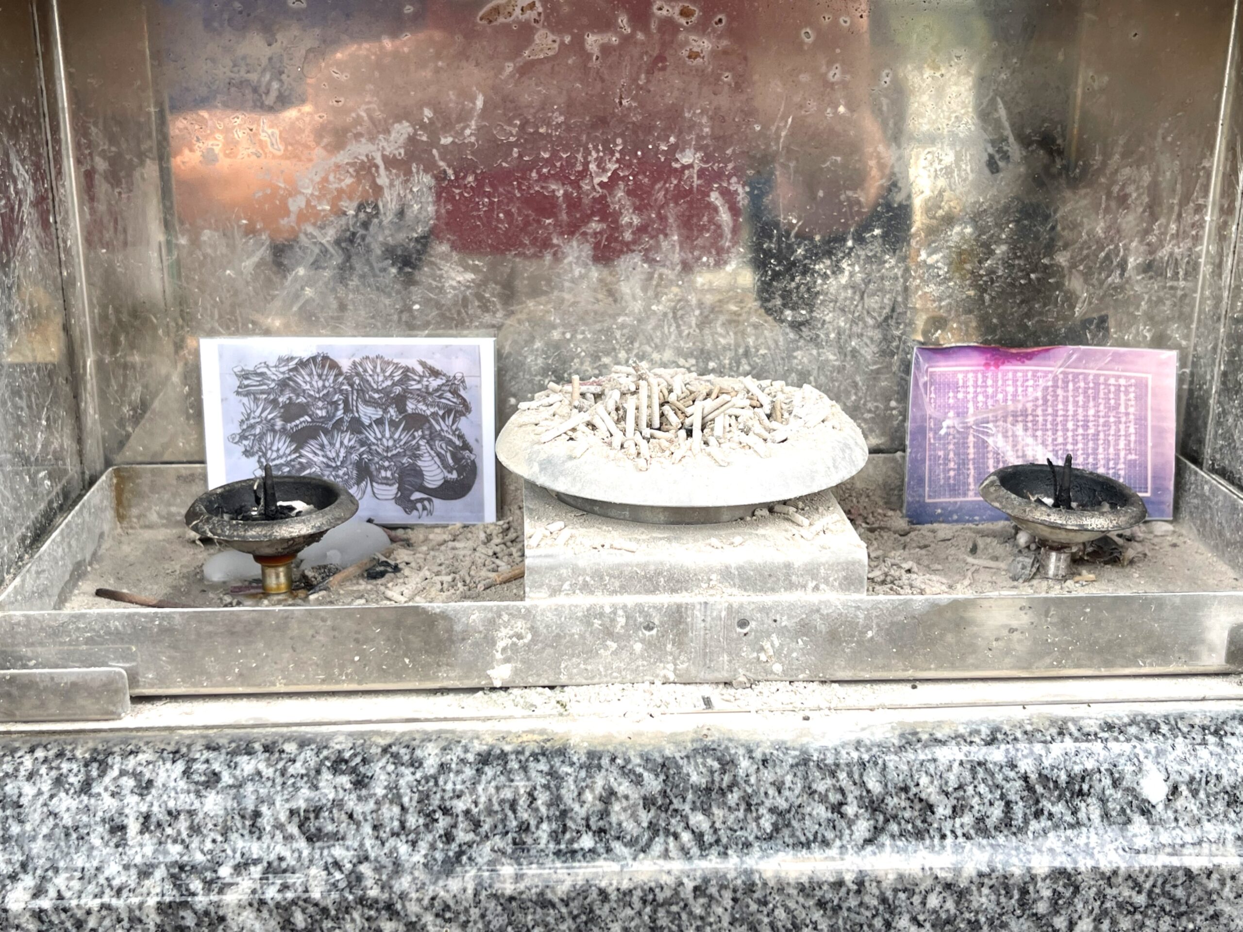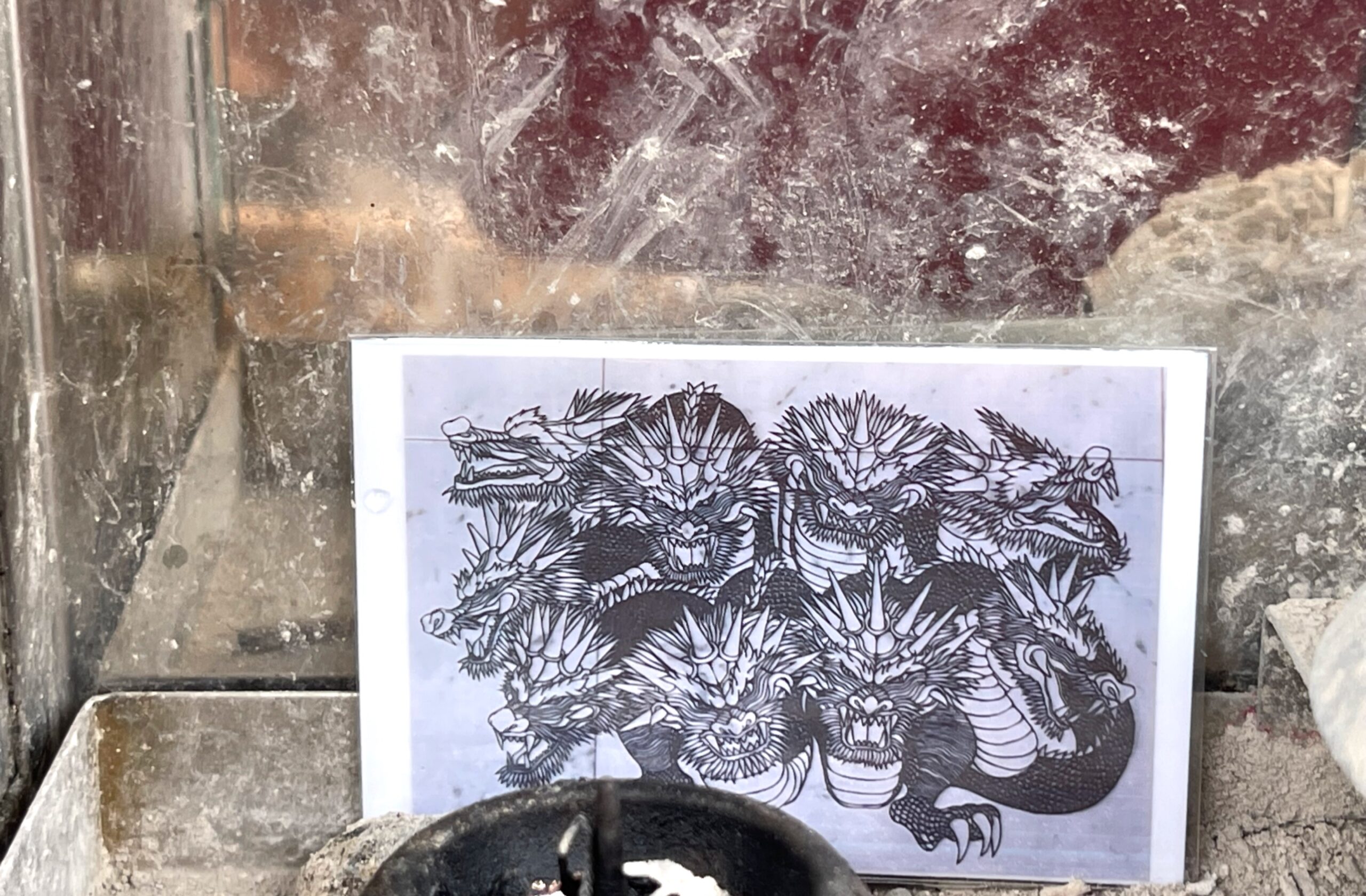 今年はこちらの九つの龍🐲の切り絵を写真のミニサイズにして、裏にメッセージを書いた物を置いてきました。九は来ていないですが、気持ちは伝わってると思います。