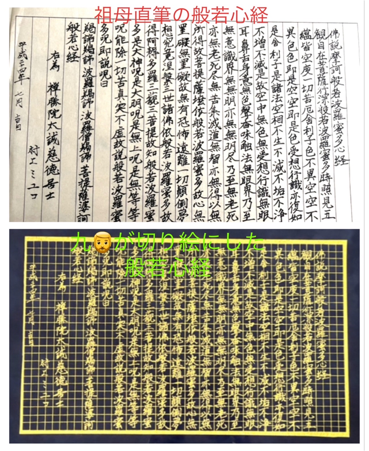 昨年は祖母の直筆の般若心経を切り絵にした物を写真に撮って、ミニサイズにしてお墓に置いてきました。