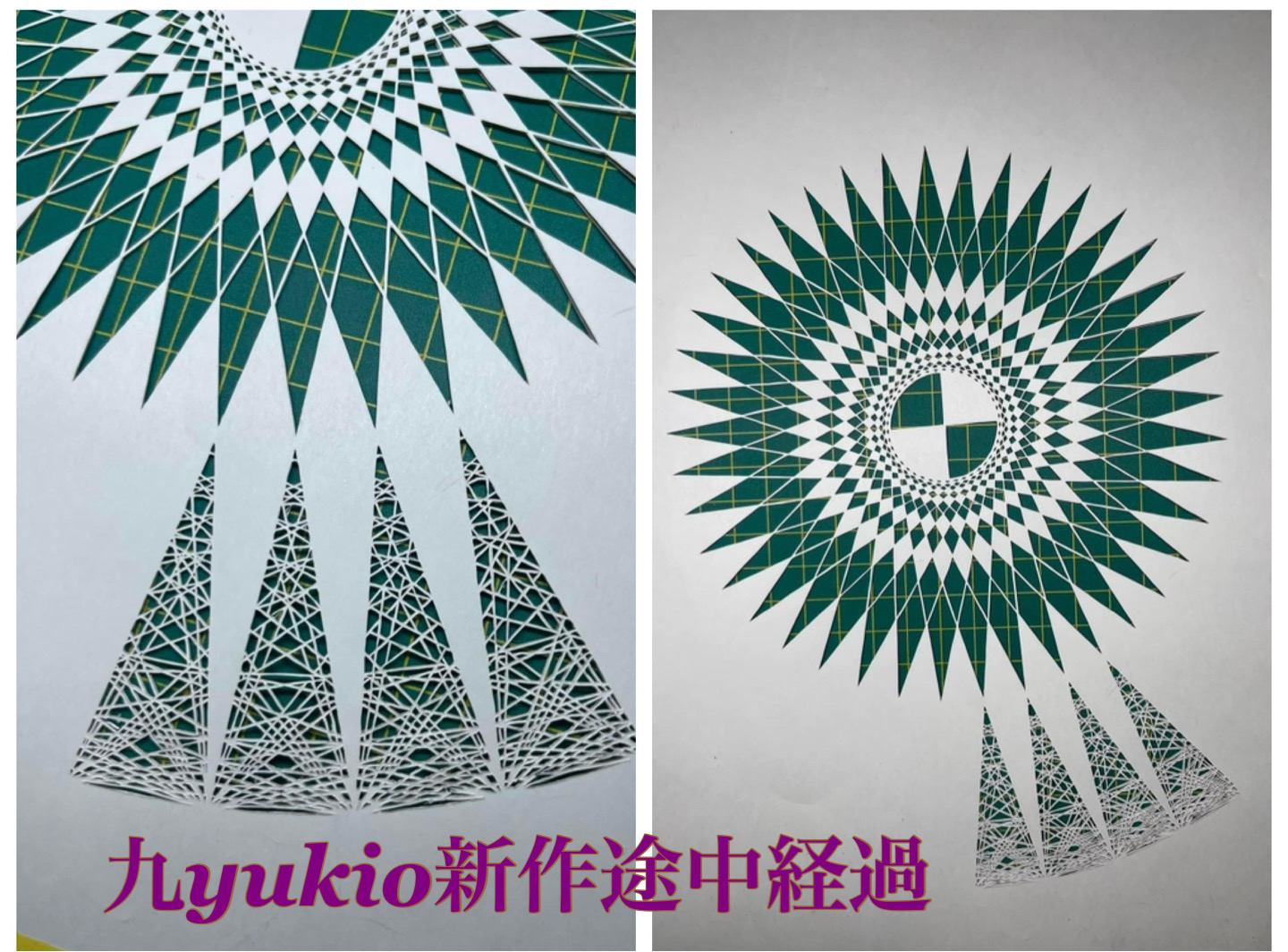 九yukioは京都在住ですが、盆地なので湿度も高く、夏は暑く、冬は底冷えがしますが、毎日自宅の部屋で作品を切っているので、今でしたらクーラーをつけて、なおかつ手の汗が紙につかないように切っています。