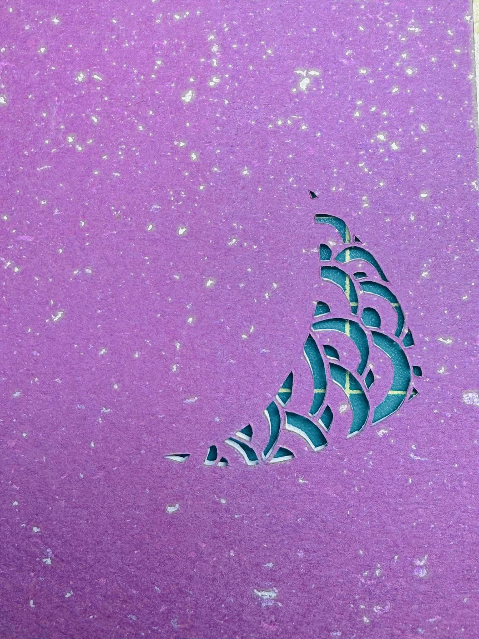 紫の背景に映し出された 細やかなライン は、まるで夜空を流れる風の軌跡のようです。