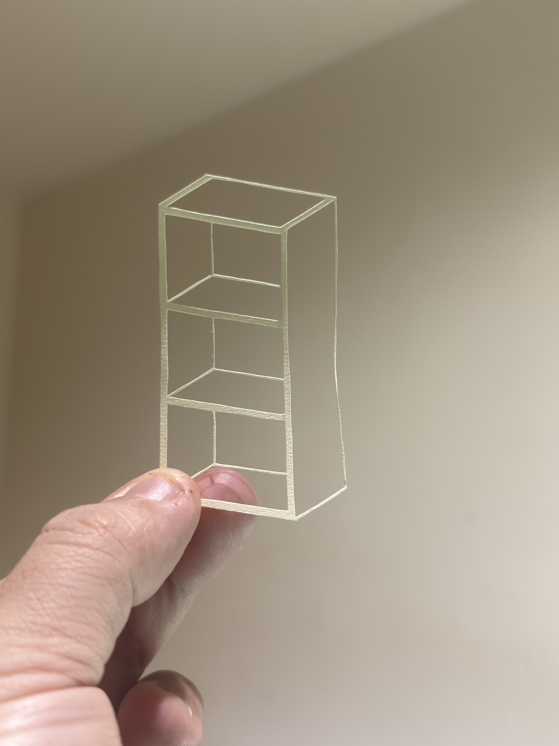 線だけで描かれたシンプルな図が、切り絵になると立体感を帯びて、まるでそこに本当に存在しているかのよう。