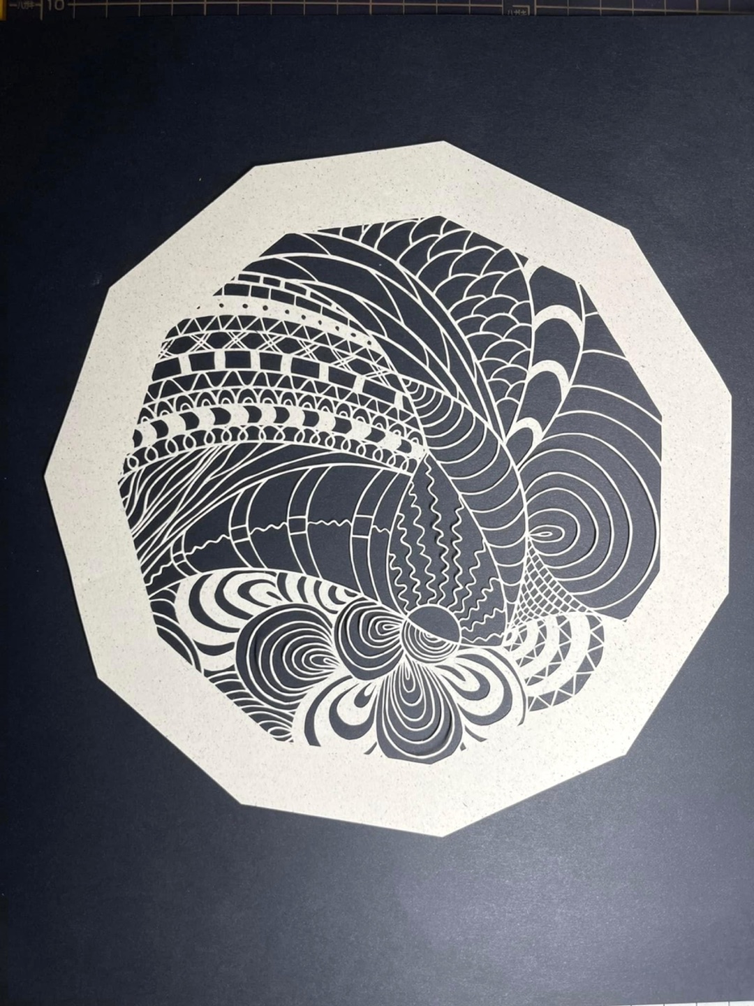 直径55cm 細かい線ばかりの作品になっています。すべてオールハンドで、魂を込めて切っています。 まるでレースのカーテンのようですが、約2ヶ月近くかかっています... -