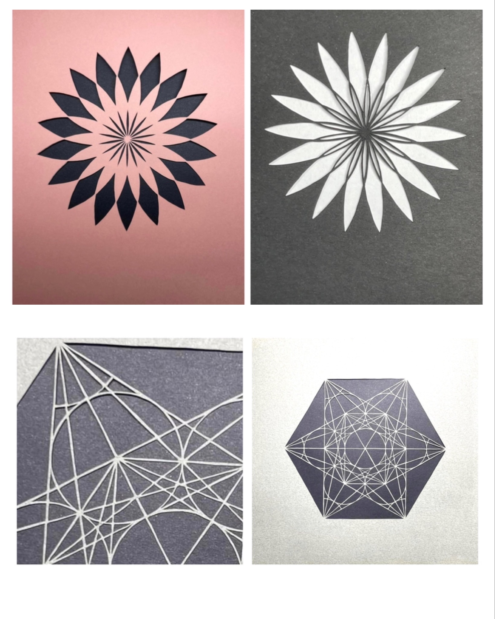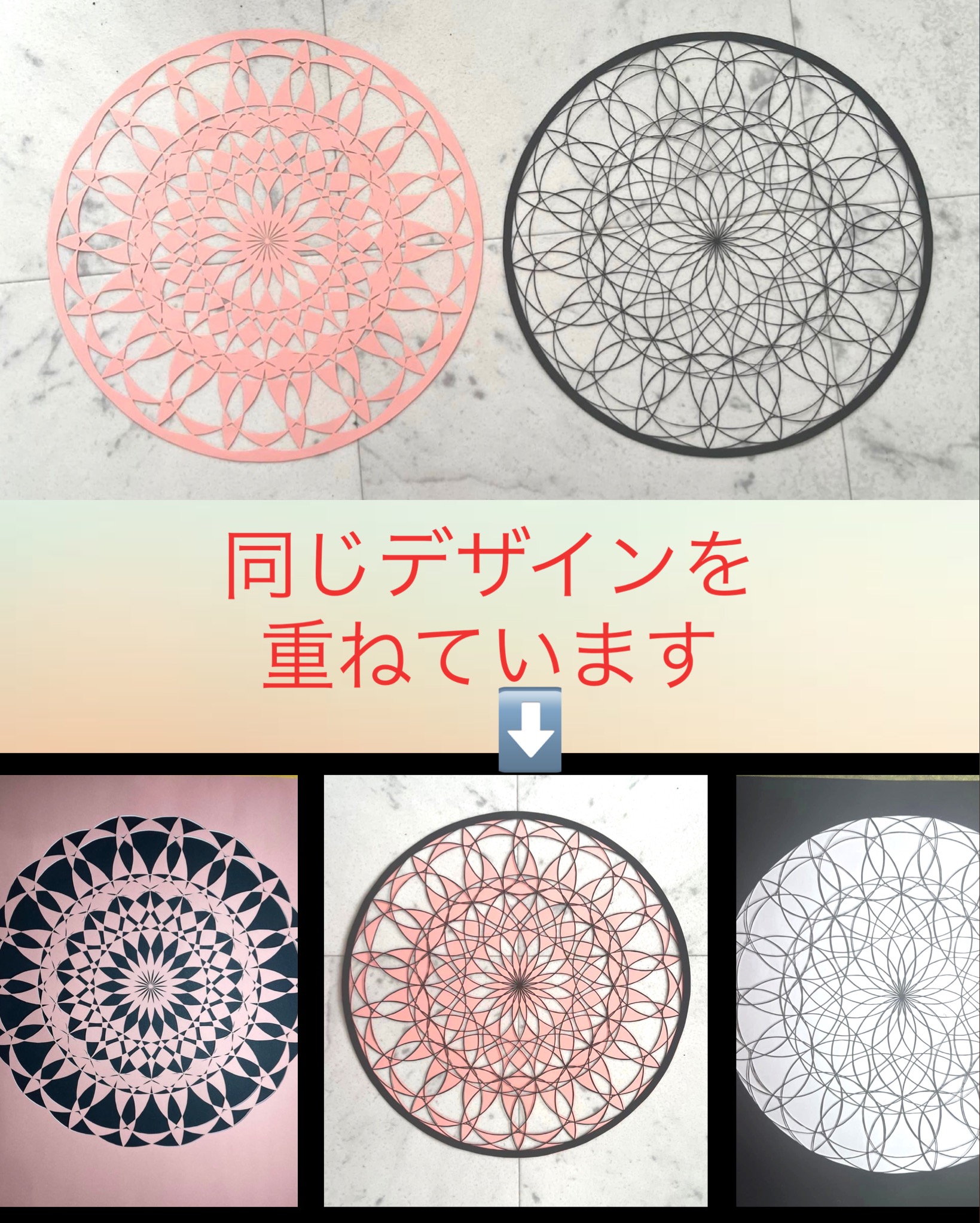 今回の作品は同じデザインのものを、切るところを変えて、同時に2枚切って重ねてあります😵 重ねるとまた別の楽しみがあります! 立体感 -