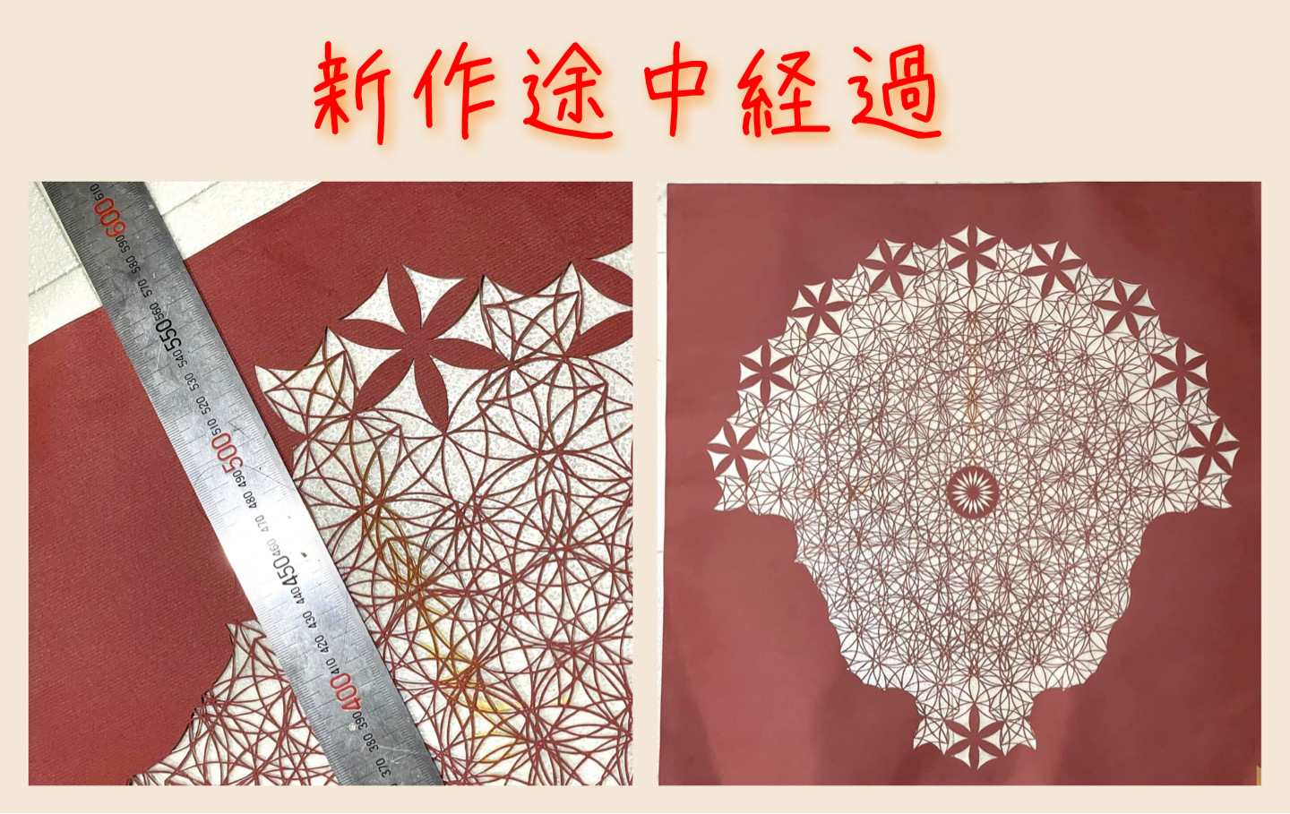 細かい作業なので進み具合が少なく感じますが、線を丁寧に丁寧にオールフリーハンドで切り進めています。 それはとても精巧で緻密です いまここ(仕上がり60cmの作品に... -
