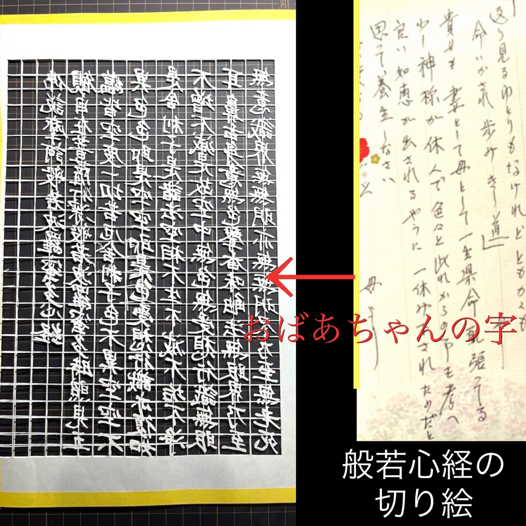 おばあちゃんの般若心経を切り絵にしてる工程
