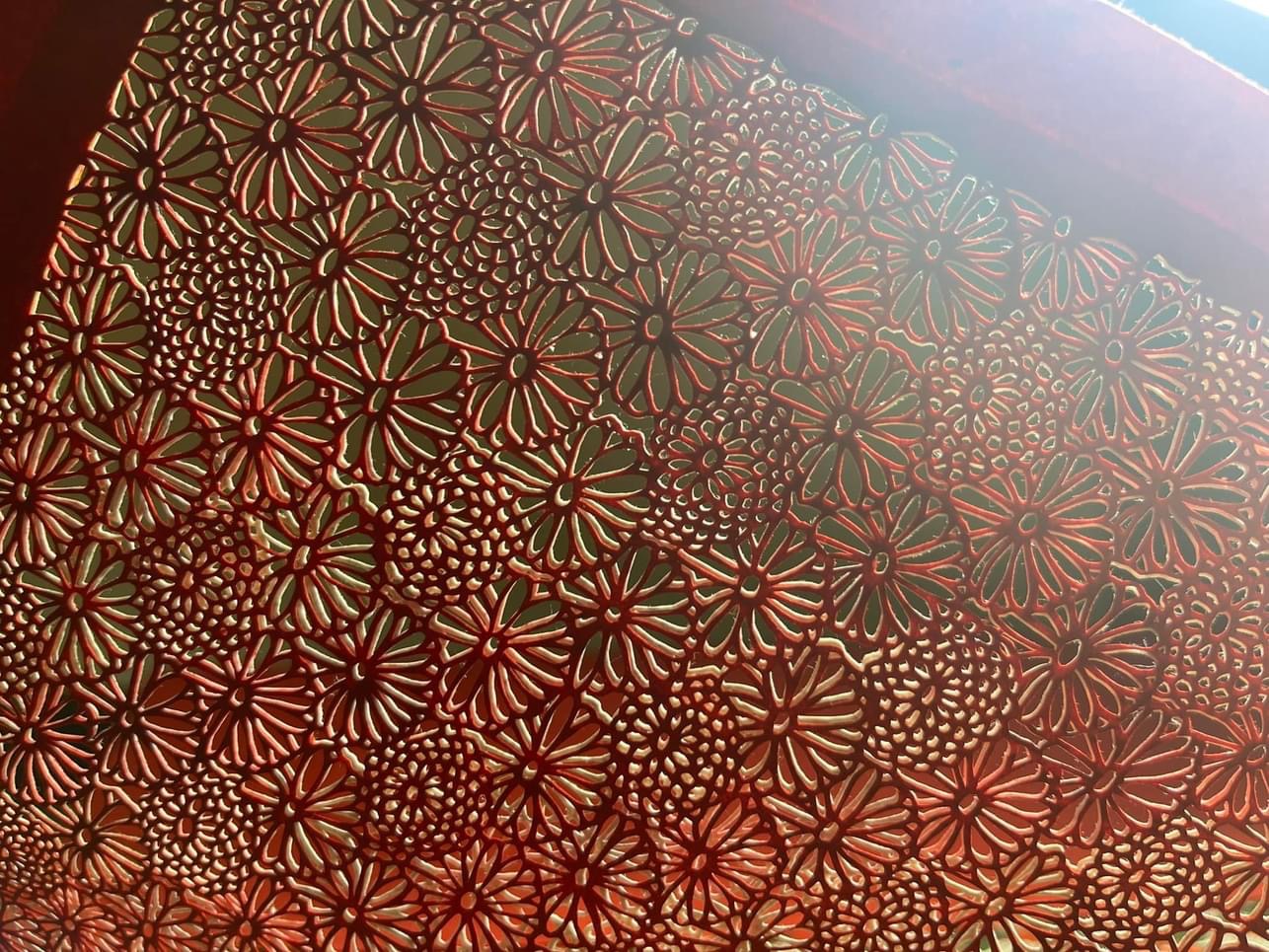 久しぶりの投稿になります。 九yukioの最新作は900×700の紙に沢山の花を切っていきます❗️ 和紙です😮 赤い和紙が沢山の花で埋め尽くされます✨ 細かい細かい作業は大変... -